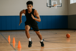 Dribbling: Kemampuan menggiring bola dengan kontrol baik sangat penting untuk menghindari lawan dan menciptakan peluang mencetak poin. Latihan dribbling dengan kedua tangan secara bergantian membantu meningkatkan kelincahan.